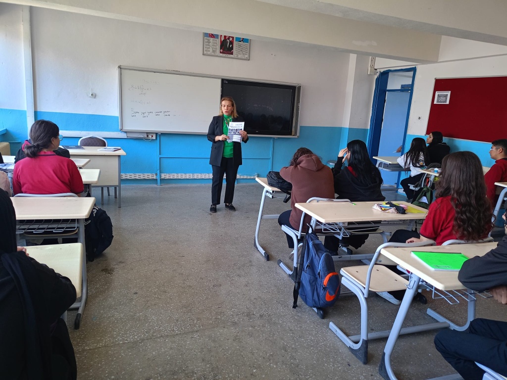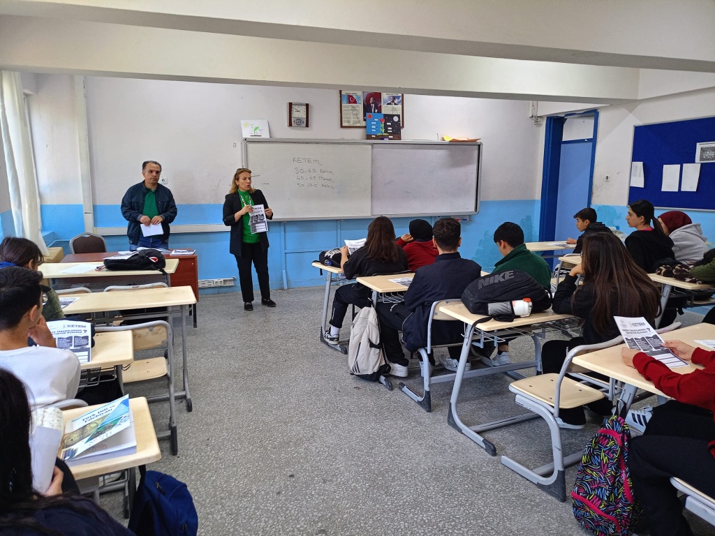 Yapılan etkinlikte, KETEM’in sunduğu ücretsiz tarama hizmetleri, kanser türleri, erken teşhisin önemi ve sağlıklı yaşam alışkanlıkları konularında öğretmen ve öğrencilere yönelik bilgilendirme eğitimi verilmiştir.