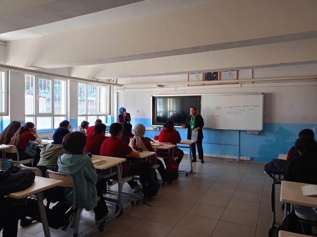 Bu doğrultuda, Yeşilyurt İlçe Sağlık Müdürlüğüne bağlı Kanser Erken Teşhis, Tarama ve Eğitim Merkezleri (KETEM) tarafından yürütülen hizmetlerin tanıtılması, öğrencilerin ve dolaylı olarak ailelerinin kanser taramaları hakkında bilgilendirilmesi amacıyla 17.10.2025 tarihinde okulumuzda etkinlik gerçekleştirilmiştir.